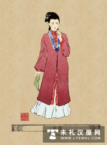 有的还将整块缎料,用手工做成细褶纹,名“百褶裙”。明代的贵妇多穿红色大袖袍,一般妇女平日常穿短衫长裙,腰上系绸带,裙子宽大,样式很多,像百褶裙、凤尾裙、月华裙等。凤冠霞帔明代女子习惯在裙子外,罩一件背子衫或是云肩。